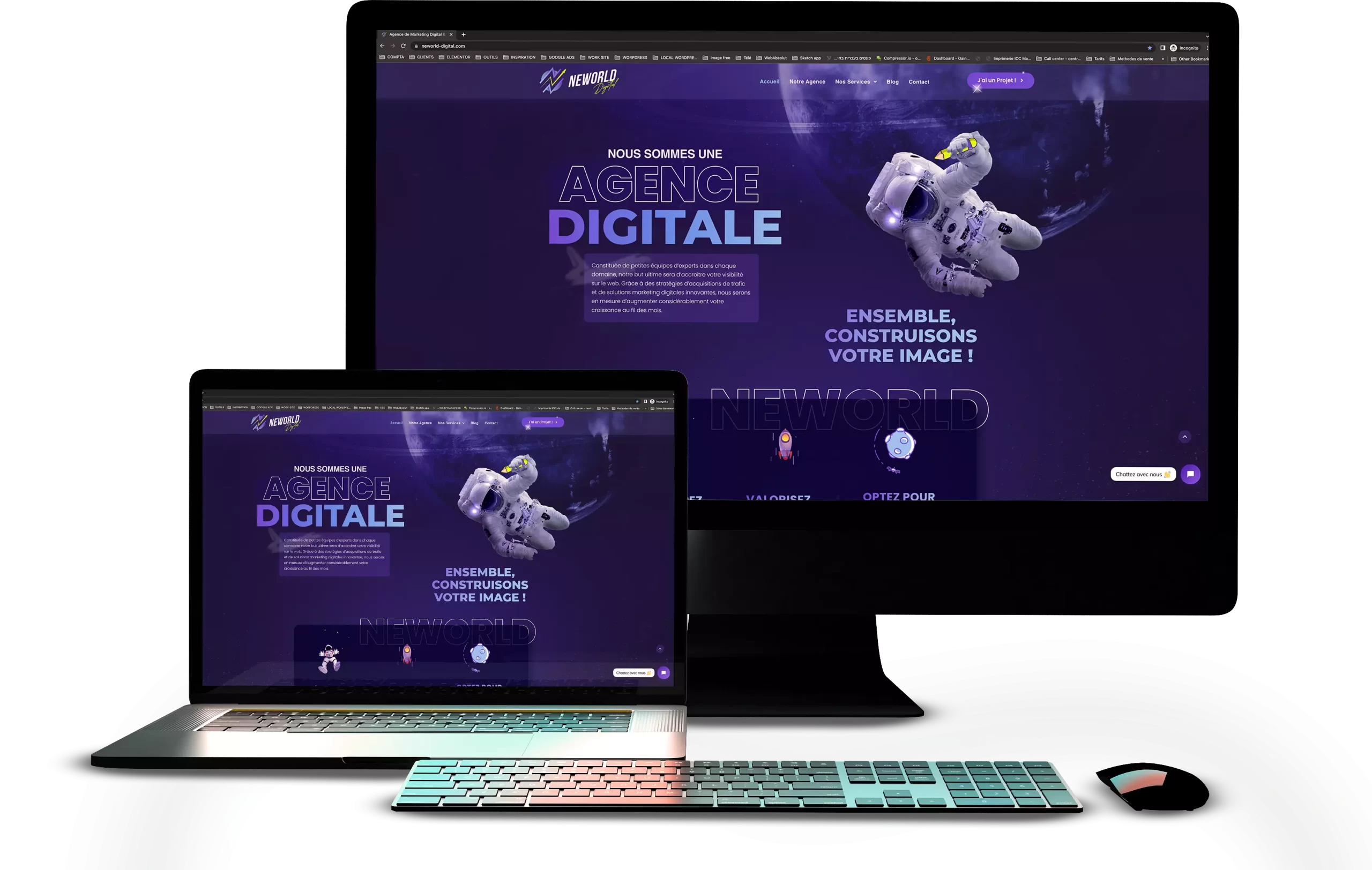 Un site web est plus qu’une jolie image. En effet, c’est une maison en ligne pour votre entreprise. Lorsque vous engagez avec votre agence de développement web Neworld Digital pour développer votre site web, nous nous assurons que vos besoins sont notre priorité absolue. Ce faisant, nous créons des sites web fonctionnels et magnifiques. De plus, nos sites sont adaptés aux besoins de votre marque ou de votre entreprise. Que vous ayez besoin d’aide pour créer du contenu pour votre site web ou pour développer un nouveau logo pour les médias sociaux de votre entreprise, Neworld vous offre son expertise ! Nous fournissons un excellent service adapté à vos besoins!